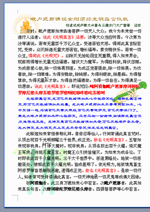 Vairocana Buddha's Light Mantra Ritual 8-inch double plastic seal A4 size religious documentZoom