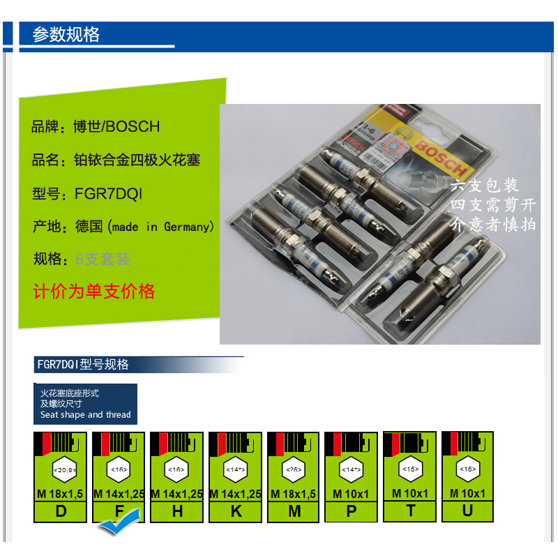 The four-polar spark plug of the Boshi platinum alloy is suitable for MG7 Rongwei 550 collar Zhijun Teng Kaiqi FGR7DQI