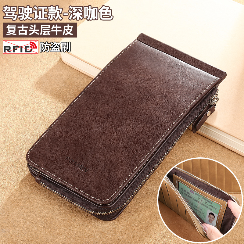 Caba male leather-proof anti-theft brush anti-discharge phone wallet package pack one package large-capacity bank card coverZoom