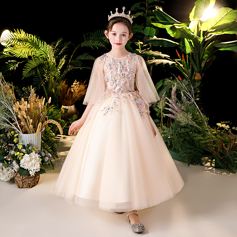 Little girl princess skirt birthday foreign flower girl's puppet skirt noble walk show girl big girl host dress fairy