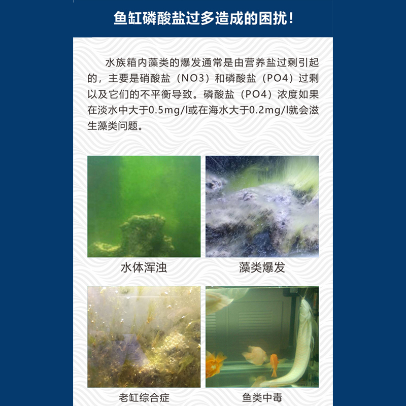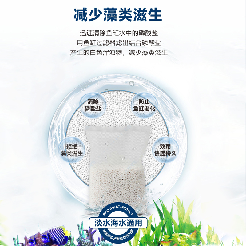 Color classificationCombined with anti-nitrification bacteria, it can be relieved of nutrients and reduced water replacement. Algae-controlled algae resin 250ML 300 liters of phosphoric acid resin 500ML 600 liters of water