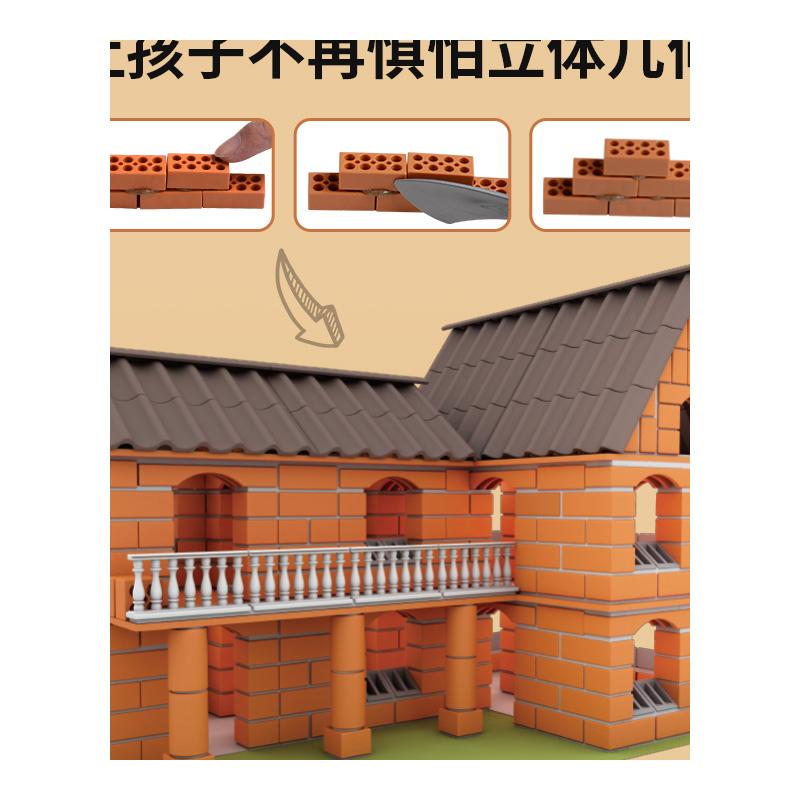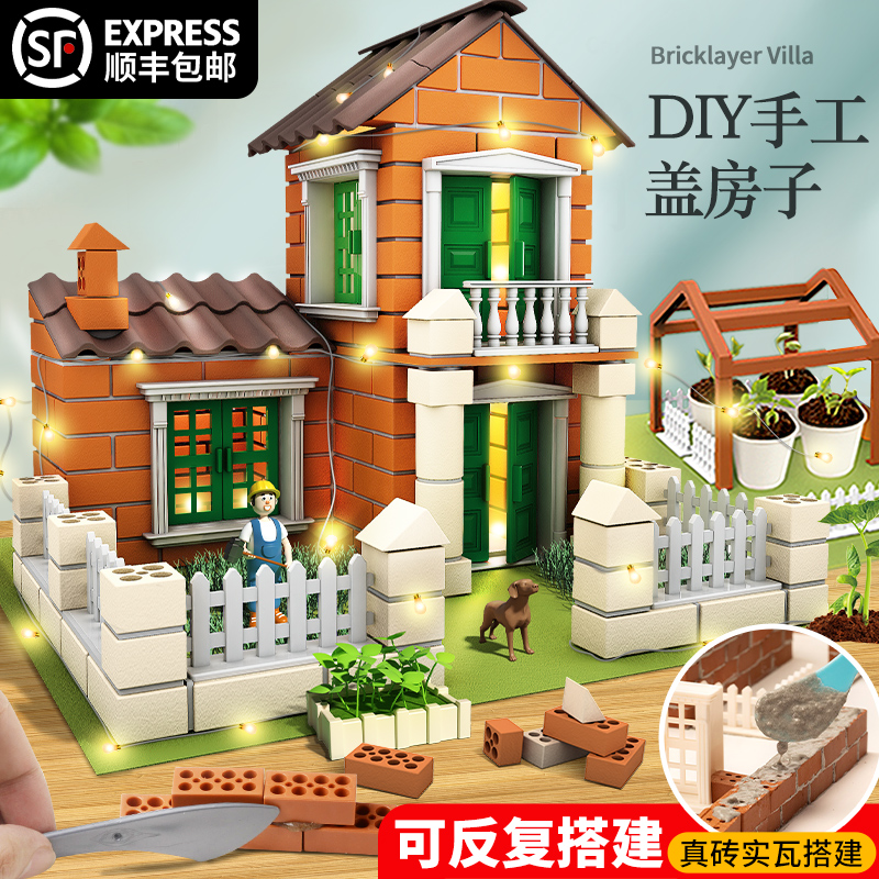 Small bricklayer children building houses architect handmade diy brick wall toy cabin model gift 6